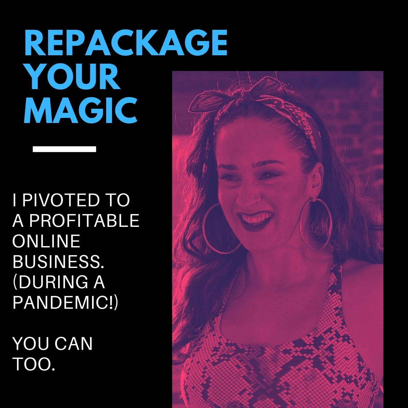 How I Took My Business Online… And How You Can Too! Get the FREE E-Book: Repackage your magic GET THE EBOOK NOW